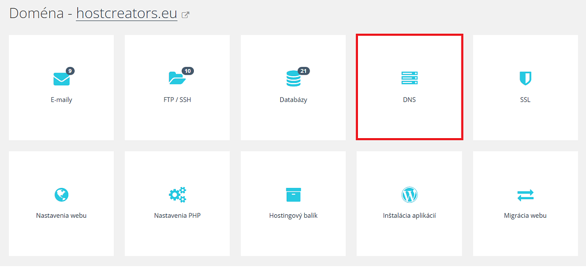 • Na nástenke / dashboarde si vyberiete Vašu doménu.