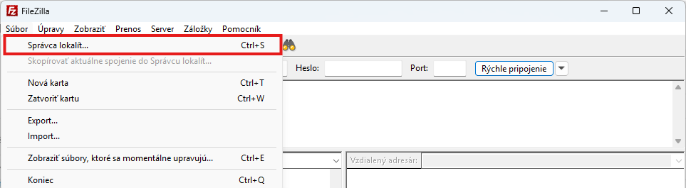 - V hornom menu kliknite na Súbor > Správca lokalít...